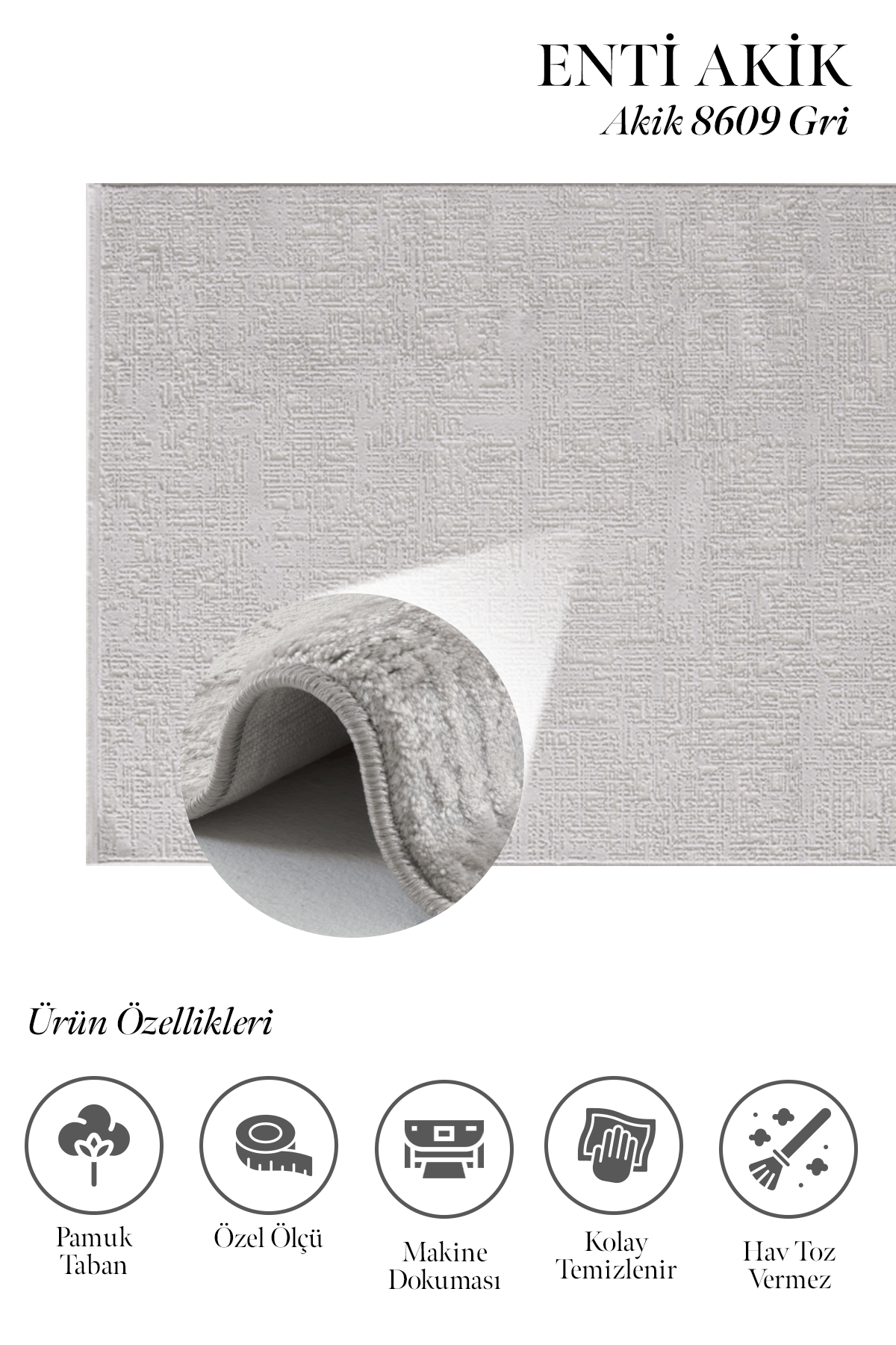 Akik 8609 Gri – Gri Tonlarla Sade ve Şık Dekoratif Halı