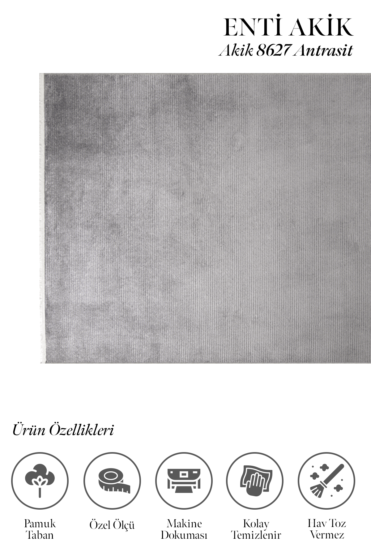 Akik 8627 Antrasit – Modern Ve Sade Tasarımıyla Oturma Odası Halısı