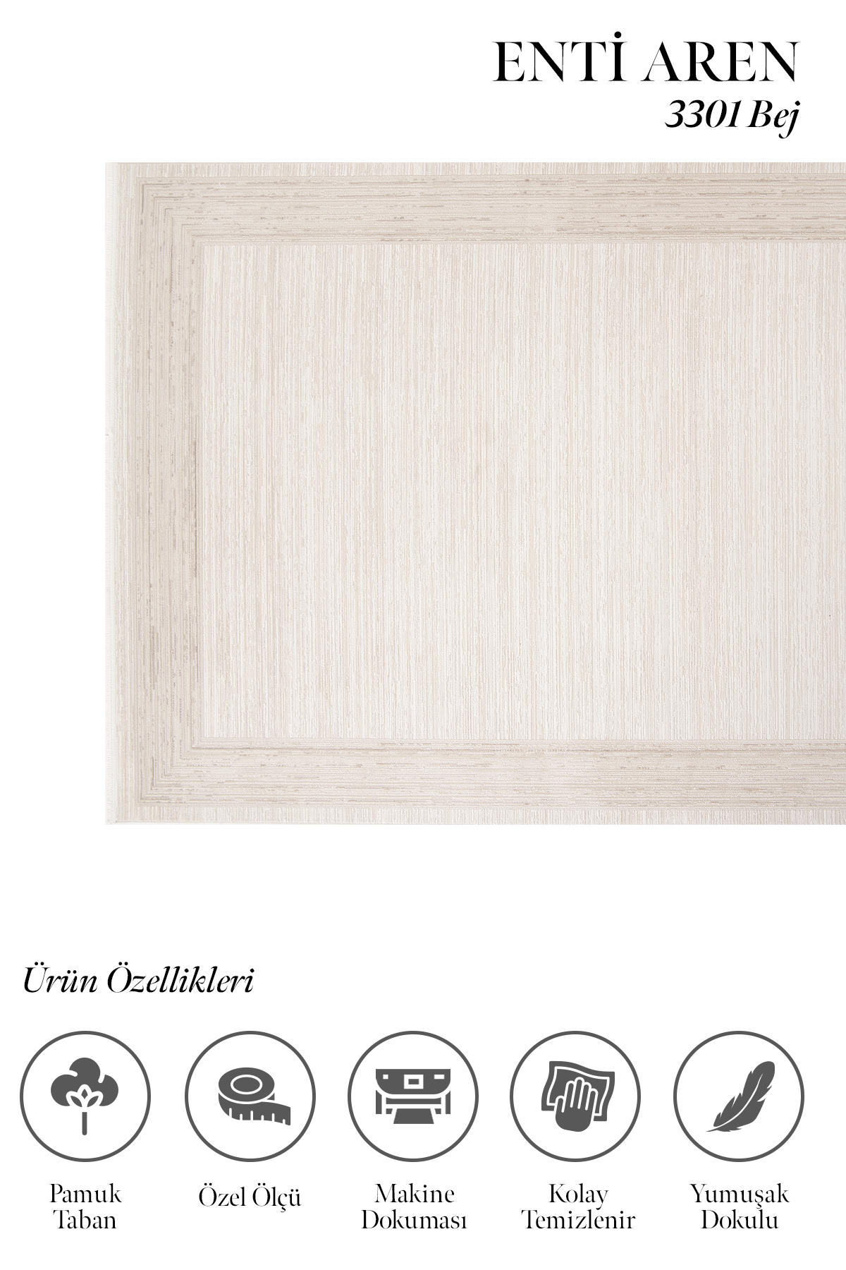 Aren 3301 Bej – Zarif Çerçeve Geçişli Düz Bej Halı