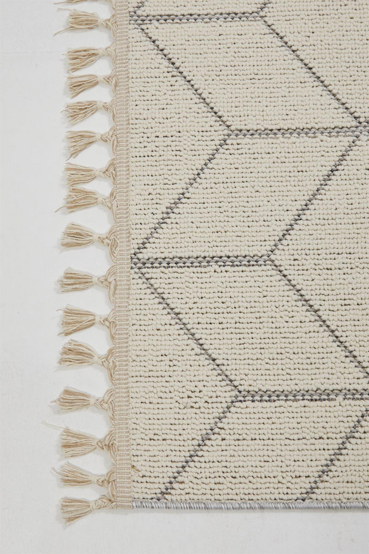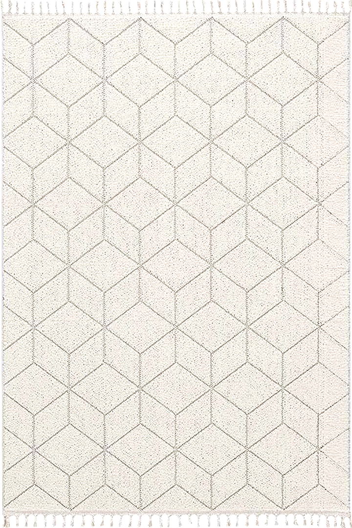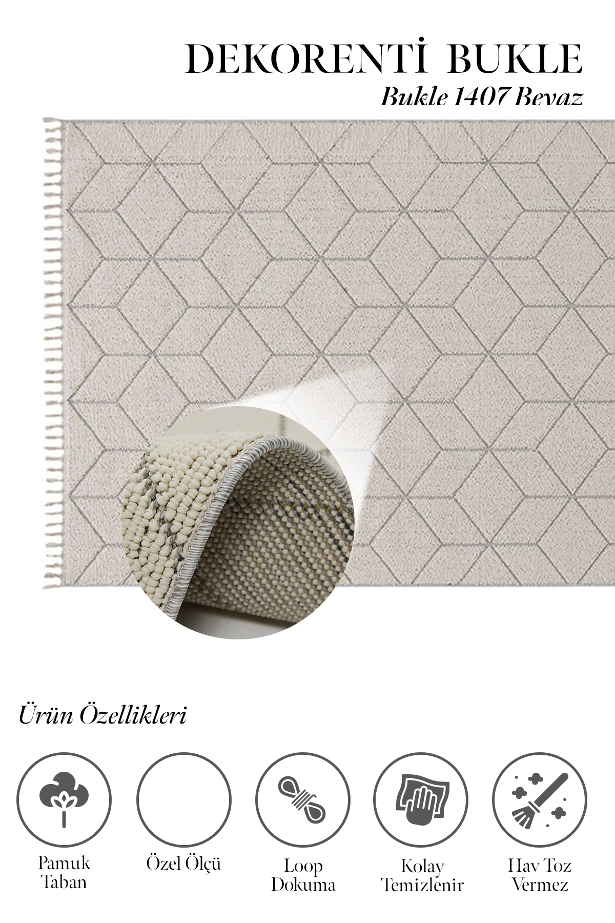 Bukle 1407 Beyaz – Üç Boyutlu Geometrik Tasarımlı Oturma Odası Halısı