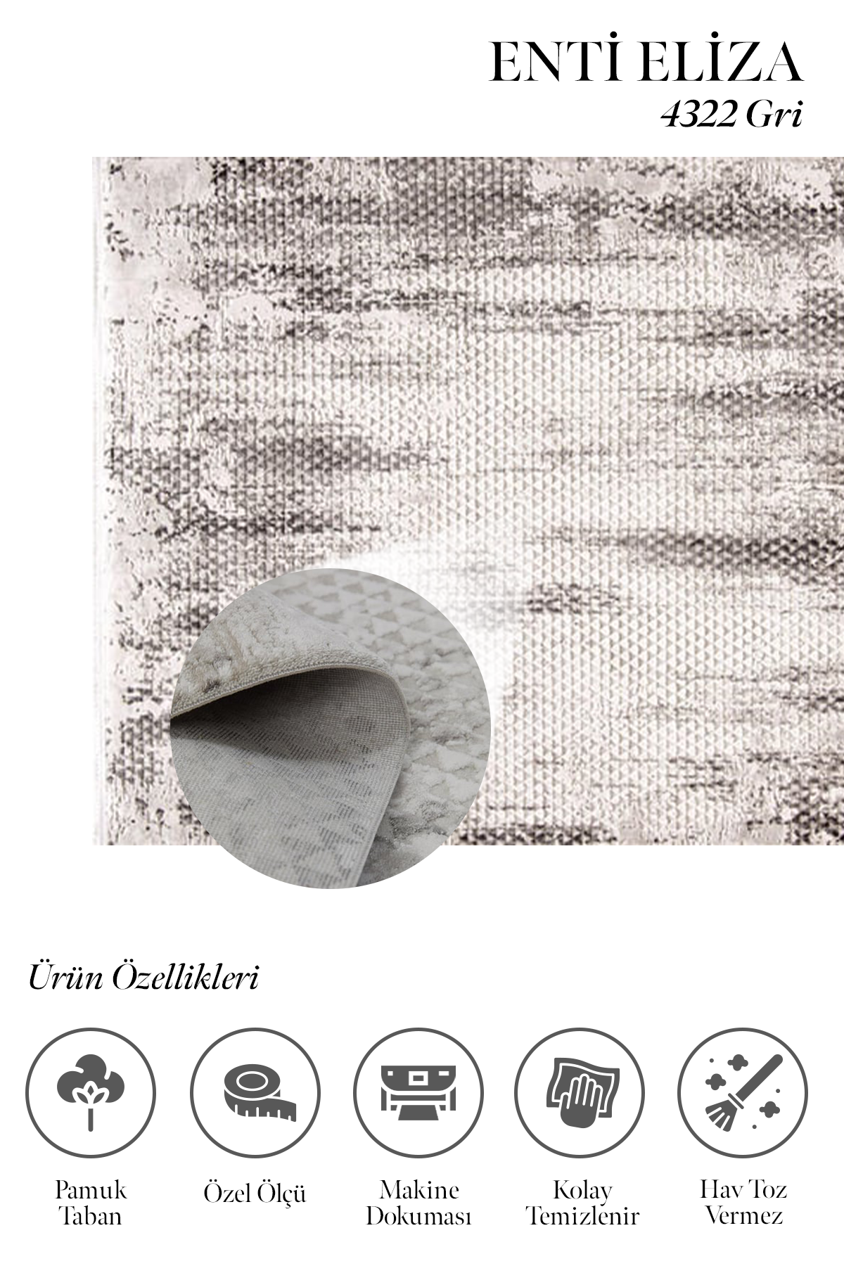 Spor ve modern desenleriyle mobilya seçeneklerine uyum sağlayan Eliza, triko elyaf akrilik iplikten üretilmiştir. Dolayısıyla hem yumuşak dokuludur hem de temizliği kolaydır. Ayrıca hav yüksekliği 11 mm.dir ve görüntüsüyle tok bir duruş sergiler. İlme ucu sıklığı 480.000 dir. Çok fazla desen zenginliğine sahiptir ki desenlerinde gri, beyaz, vizon, sarı, multi, ve mavi renk tonları mevcuttur. Yan kısımları lazer kesim, saçaklı ve pamuk tabanlı Eliza serisi dayanıklı ve estetik bir görünüme sahiptir.
