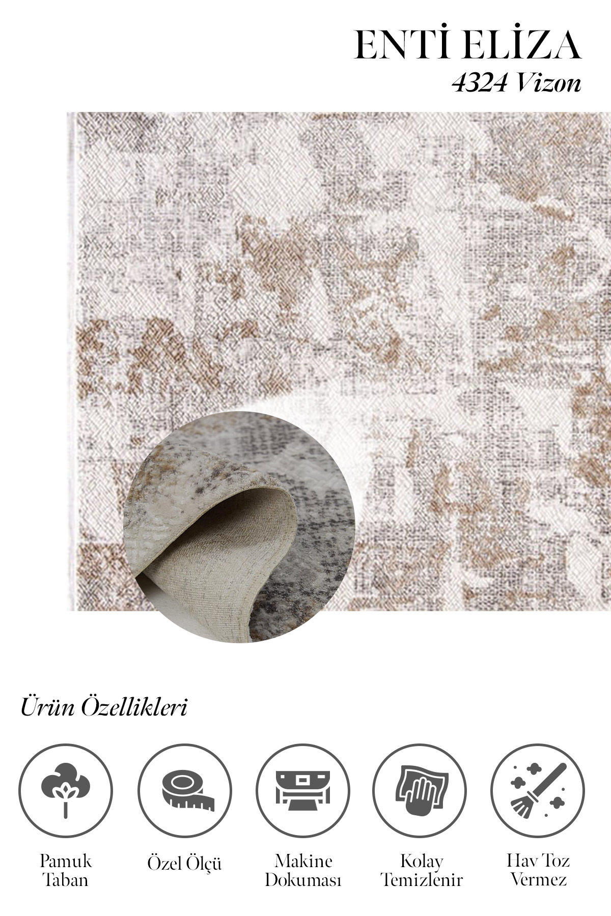 Eliza 4324 Vizon – Orta Havlı Oturma Odası Halısı