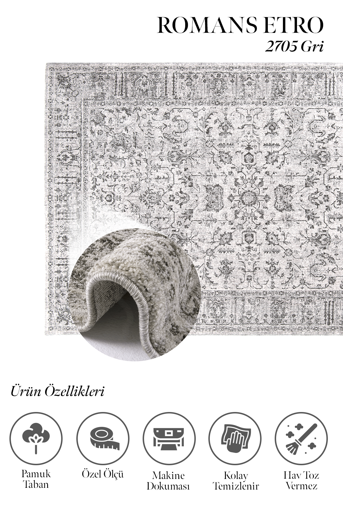 Etro 2705 Gri – Detaylı Desenli Gri Retro Halı Modeli