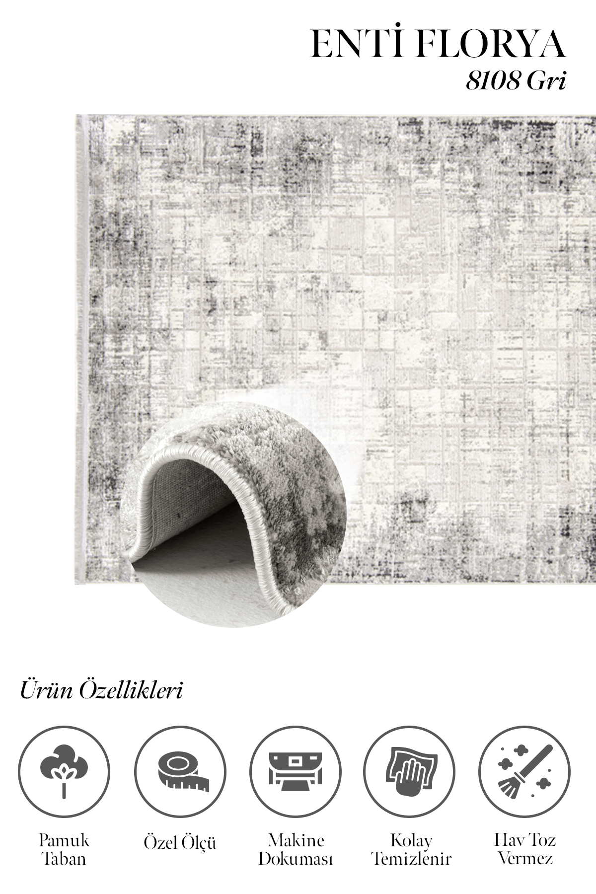 Enti halı markasının yeni serisi Florya’nın yüzeyindeki şık çizgileri ile oluşan desenler halıya modern bir hava katar. Ayrıca dokusunda en çok tercih edilen krem ve bej renkler hakimdir. Üstelik yumuşak bir yüzeye sahiptir ve hav, tüy çıkarmaz. Yan kenarları overlok dikişli, ön kısımları spor saçaklıdır ve pamuk atkılı tabana sahip bir modeldir. Florya serisi gerek kolay temizlenir olması gerekse neme küfe dayanıklı olmasından dolayı evin bir çok alanında verimli olarak kullanılır. Mikro polyester iplik türünde bir makina halısıdır.