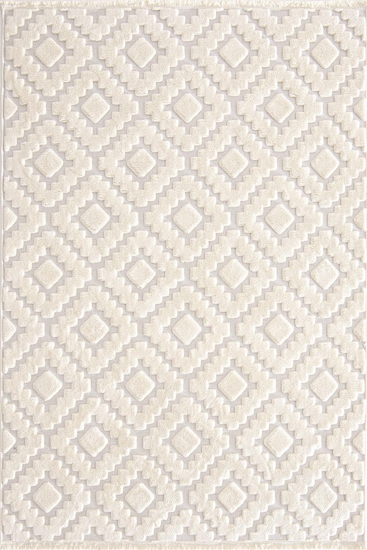 İndus 8003 Beyaz – Kabartma Desenli Beyaz Halı Modeli