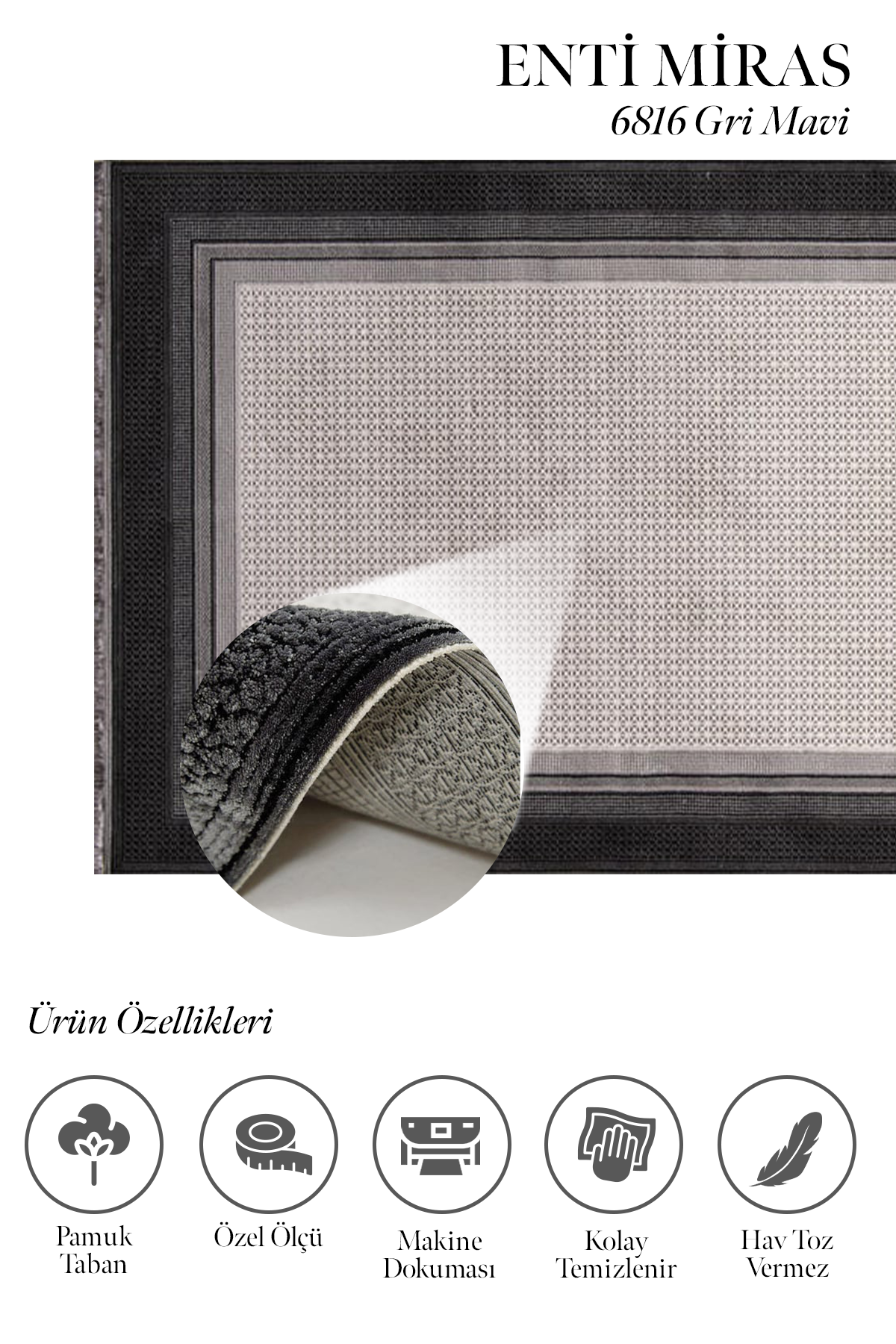 Miras 6816 Gri Mavi – Yumuşak Dokulu Konforlu Salon Halısı