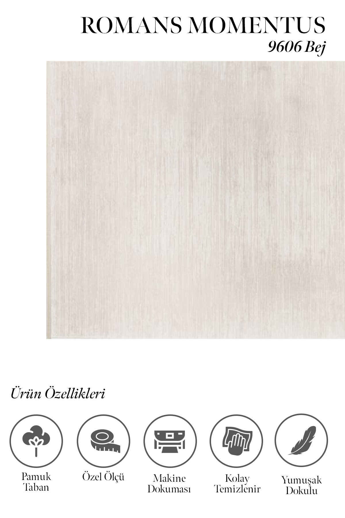 Pamuk tabanlı yapısı sayesinde zemine kusursuz bir şekilde oturur, kaymaz ve yerle adeta bütünleşir. Bu sayede özellikle geniş salon alanlarında ağır ve tok duruşuyla göz doldurur.