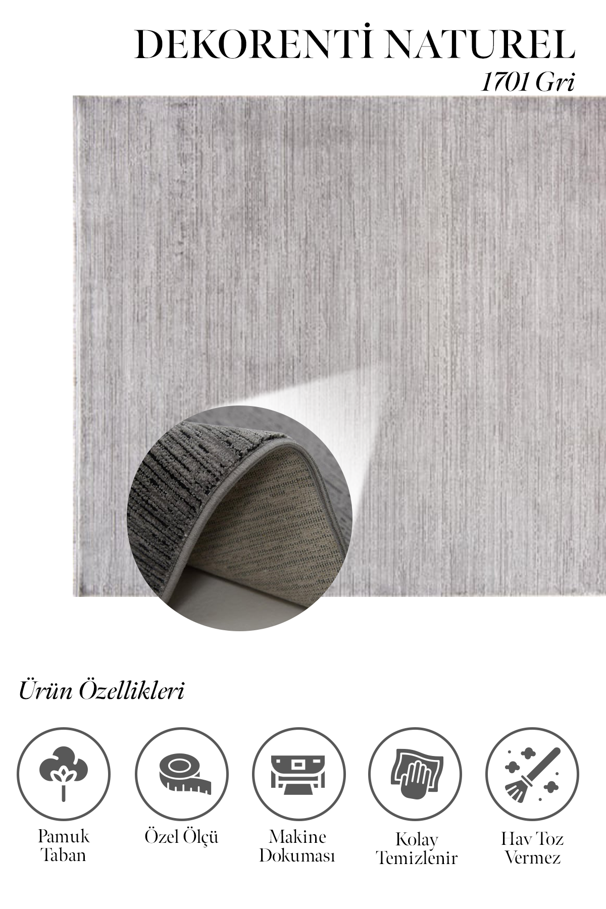 Naturel 1701 Gri – Zarif Dokuya Sahip Gri Renk Halı