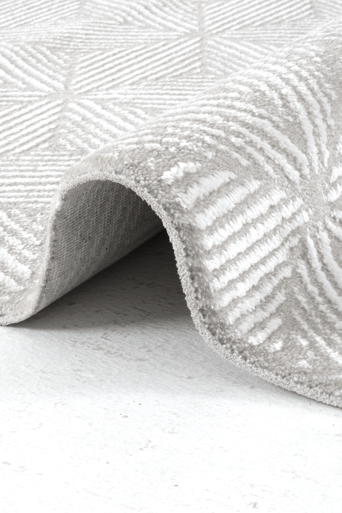 Norm 6211 Beyaz – Üç Boyutlu Efektli Beyaz Geometrik Halı