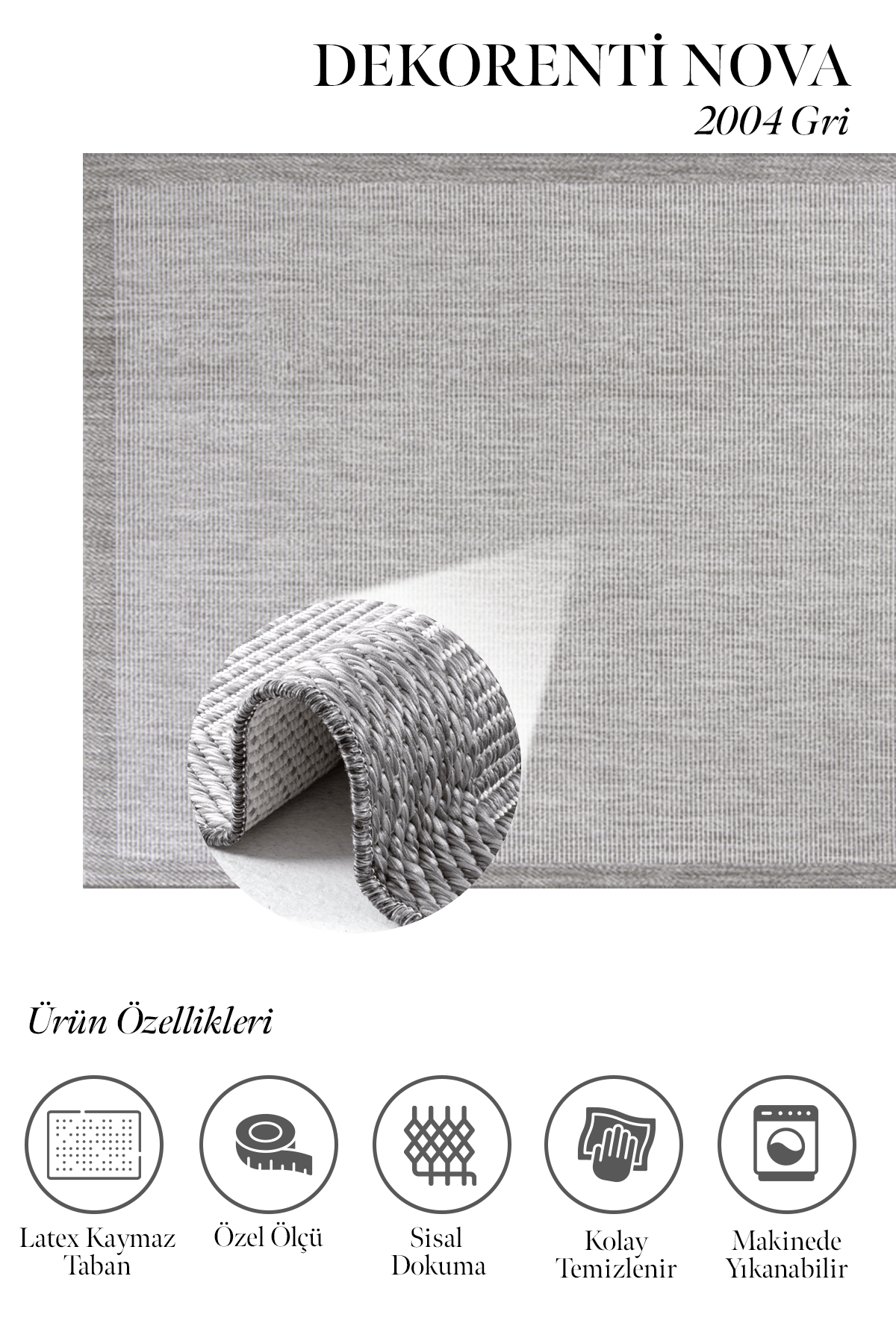 Nova 2004 Gri – Sınır Detaylı Gri Halı, Minimal Tasarım