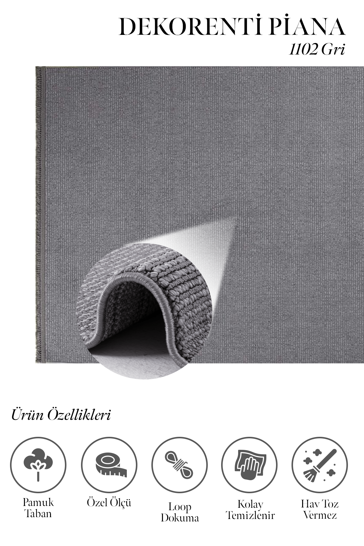 Piana 1102 Gri – Koyu Gri Düz Dokulu Modern Halı