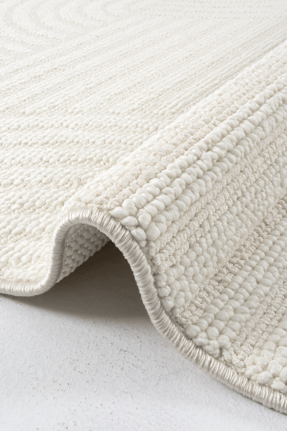 Piana 1117 Beyaz – Aydınlık Oturma Odaları İçin Kavis Detaylı Halı