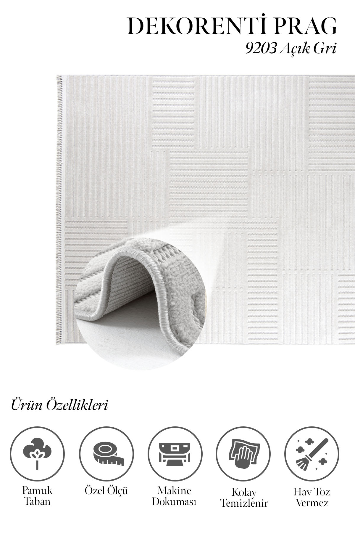 Prag 9203 Açık Gri – Minimal Desenli Modern Açık Gri Halı