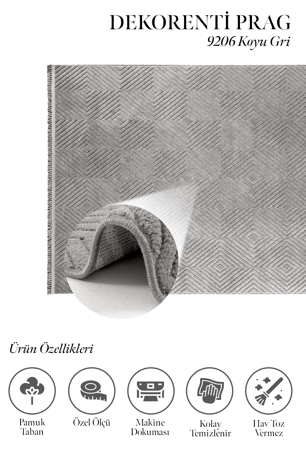 Prag 9206 Gri – Derinlik Katan Koyu Gri Oturma Odası Halısı