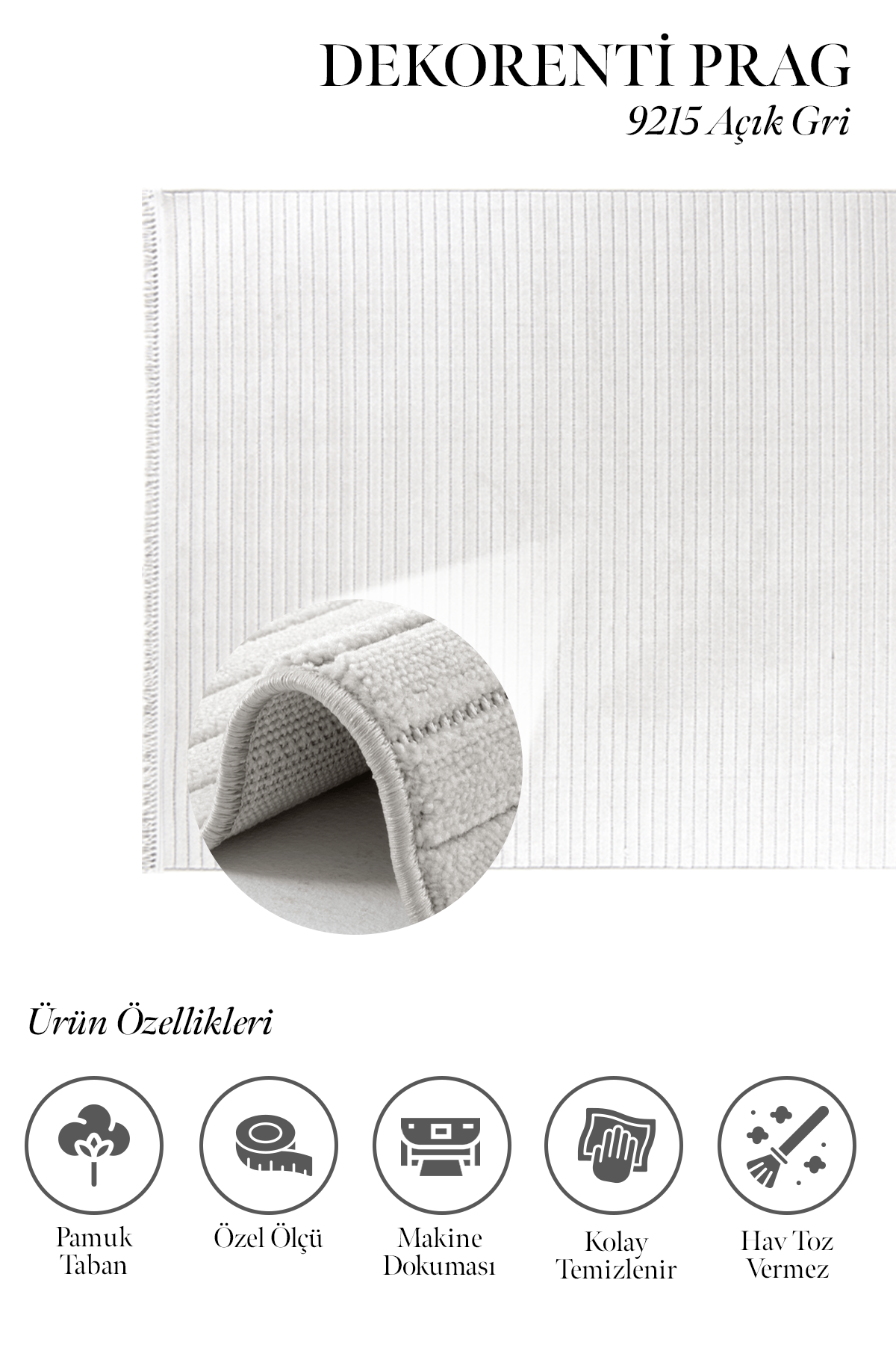 Prag 9215 Açık Gri – Sade Şıklıkta Açık Gri İnce Çizgili Halı