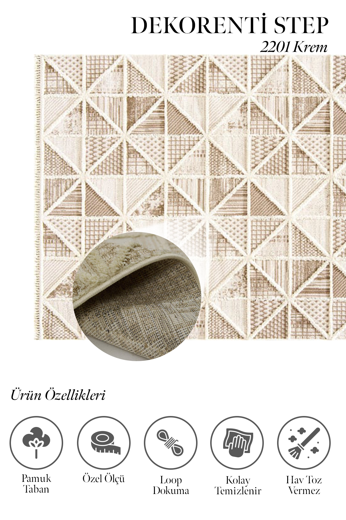 Step serisinin hem modern ve spor desen türleriyle hem de boyutlu bir halı modeli olması nedeniyle evinize modern bir hava katar. Üstelik örgü saçakları ve pamuk tabanı da halıya şık bir görünüm kazandırır. Ayrıca hav ipi polip kalitesinde antialerjik ve tozumaz özellikte olan bir makina halısıdır. İlme ucu sıklığı 310.000 ve hav yüksekliği 10 mm.dir. Yan kenarları overlok dikişlidir. Yatak odası, oturma odası, çalışma odası gibi alanlar için idealdir. Gri, vizon ve krem tonlarında renkleri olan bir modeldir. Step serisiyle evinizi yenileyin, kendinizi mutlu edin.