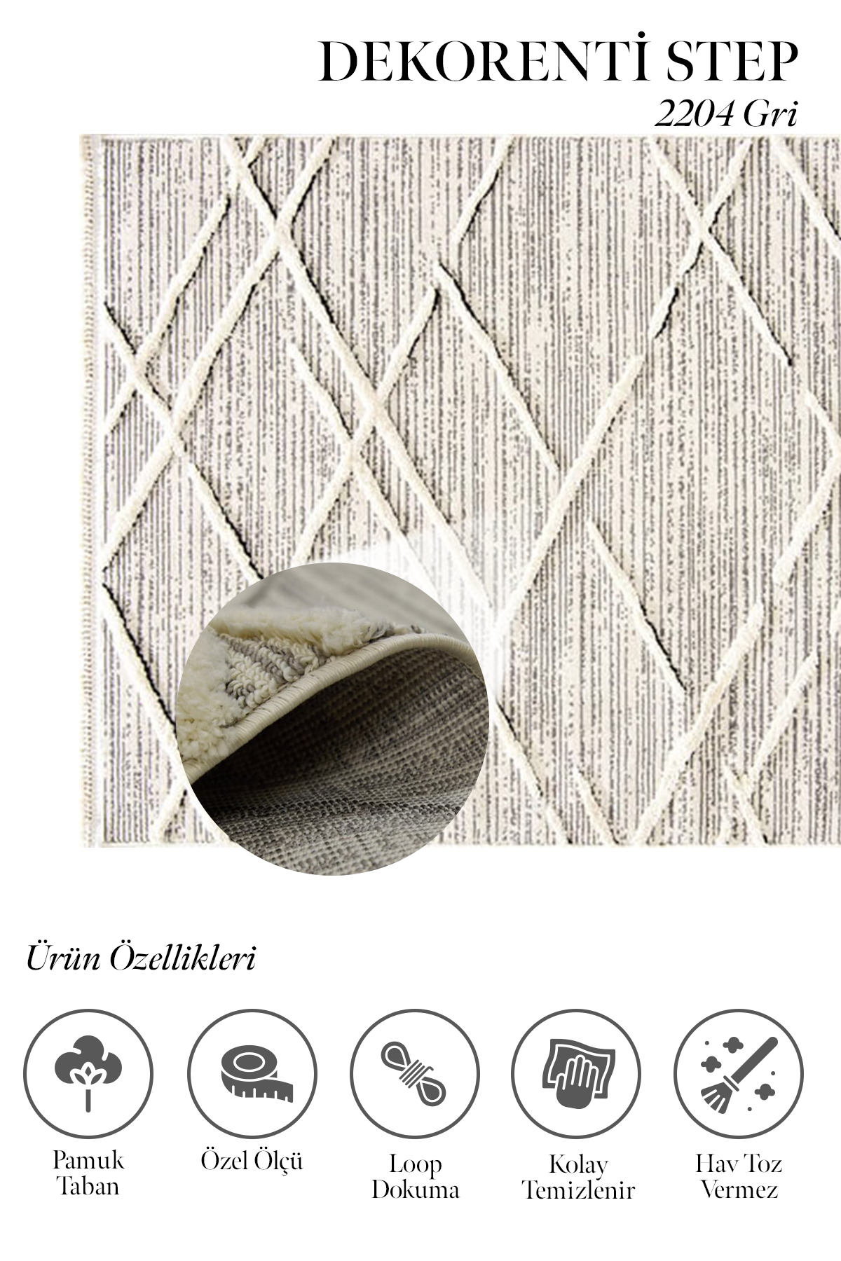 Step serisinin hem modern ve spor desen türleriyle hem de boyutlu bir halı modeli olması nedeniyle evinize modern bir hava katar. Üstelik örgü saçakları ve pamuk tabanı da halıya şık bir görünüm kazandırır. Ayrıca hav ipi polip kalitesinde antialerjik ve tozumaz özellikte olan bir makina halısıdır. İlme ucu sıklığı 310.000 ve hav yüksekliği 10 mm.dir. Yan kenarları overlok dikişlidir. Yatak odası, oturma odası, çalışma odası gibi alanlar için idealdir. Gri, vizon ve krem tonlarında renkleri olan bir modeldir. Step serisiyle evinizi yenileyin, kendinizi mutlu edin.