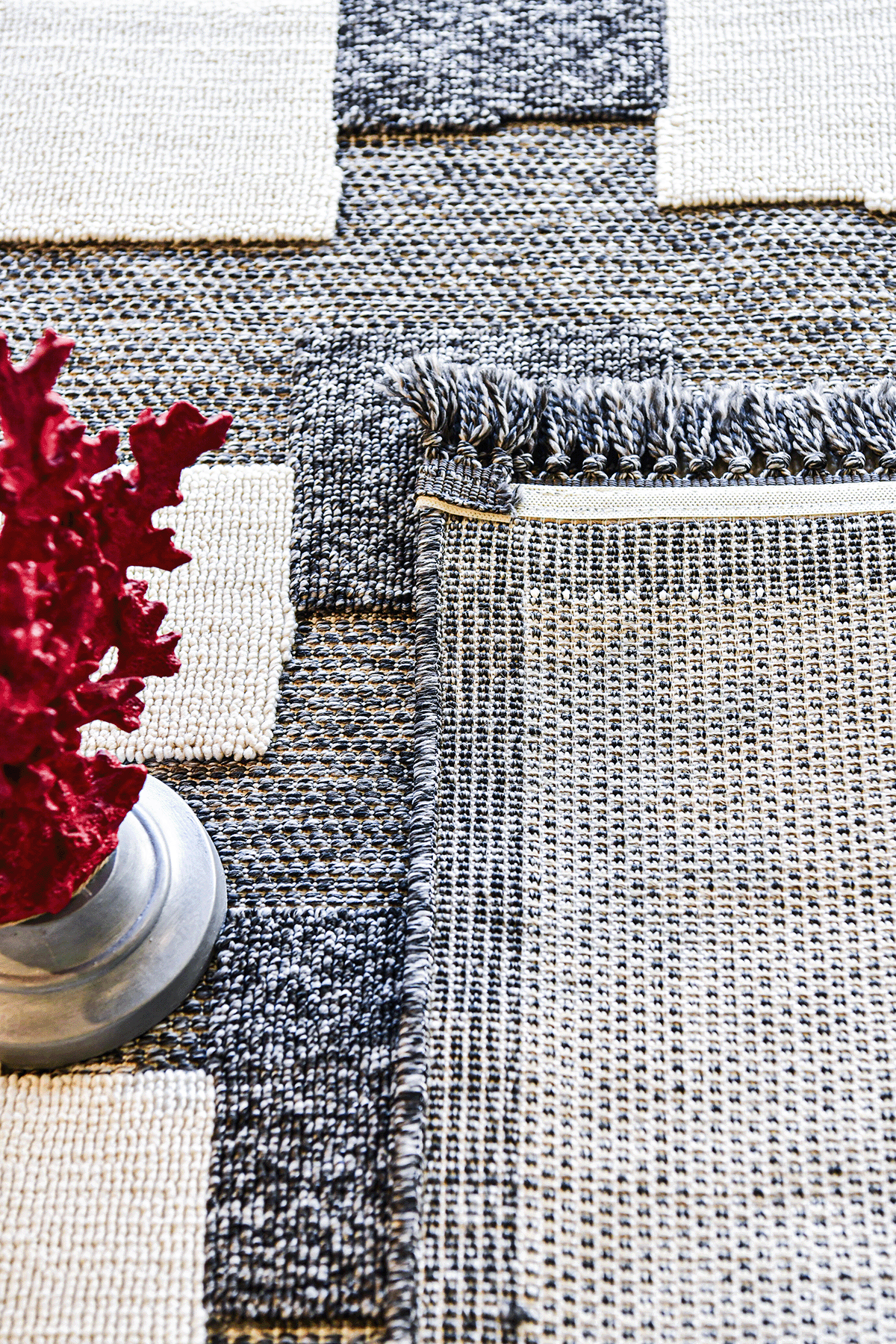 Togo Serisi Dekorenti markasının hafifliği ve boyutlu desenleri ile ön plana çıkan modellerindendir. Ayrıca çok fazla çeşidi olan geometrik desenlere sahip Togo serisi ile evinize uygun halıyı daha kolay seçebilirsiniz. Desenlerinde gri, bej, beyaz ve antrasit renklere sahiptir. Püsküllü saçaklarıyla halıya şık ve dekoratif bir görüntü verir. Yan kenarları overlok dikişlidir. Togo jüt tabanlı, iplik türü polip olan makine halısıdır.