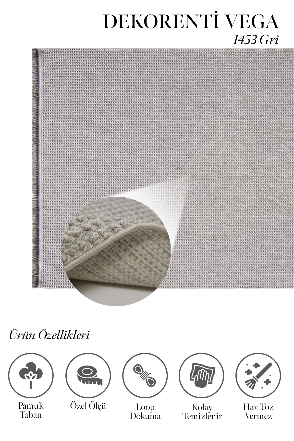 Vega 1453 Gri – Giriş Alanları İçin Kaymaz Tabanlı Yuvarlak Gri Halı