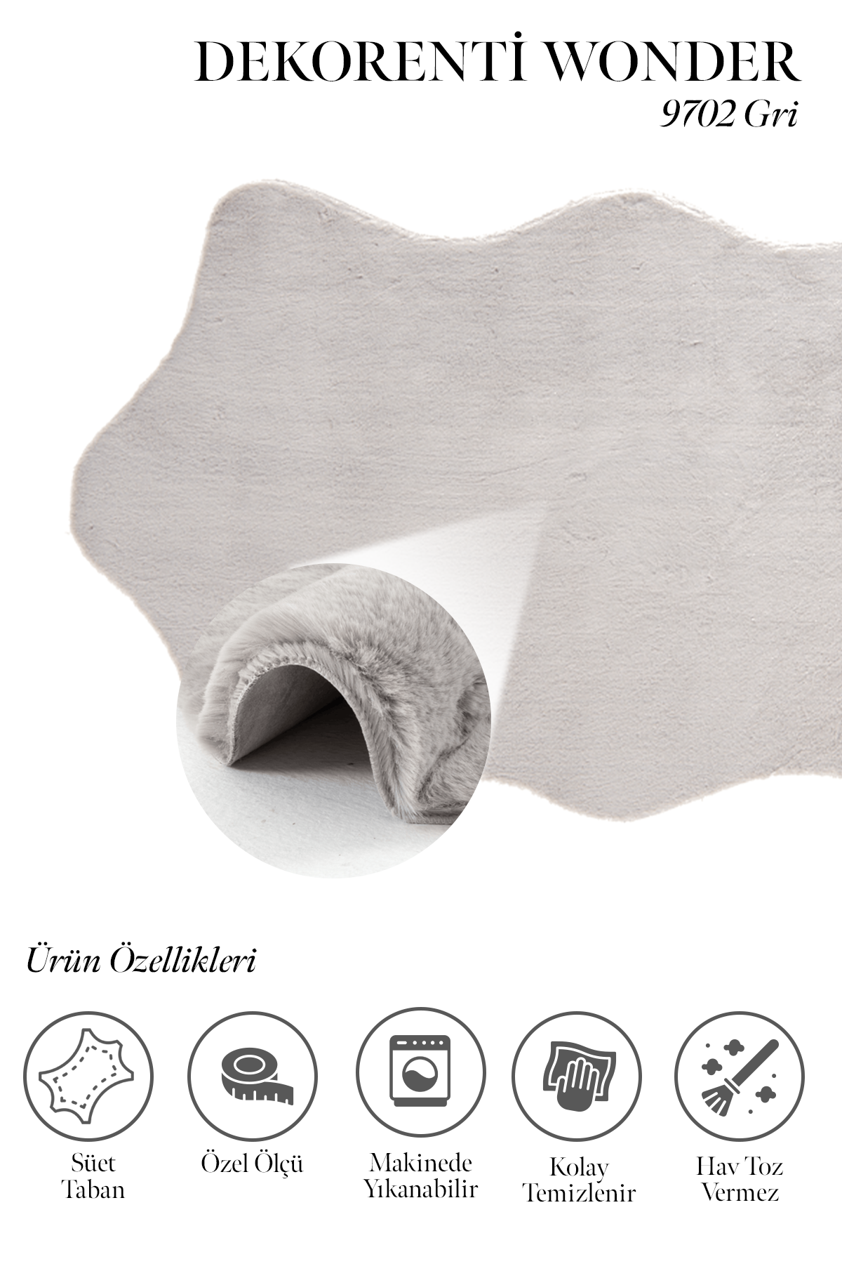 Wonder 9702 Gri – Doğal Görünümlü Gri Post Halı